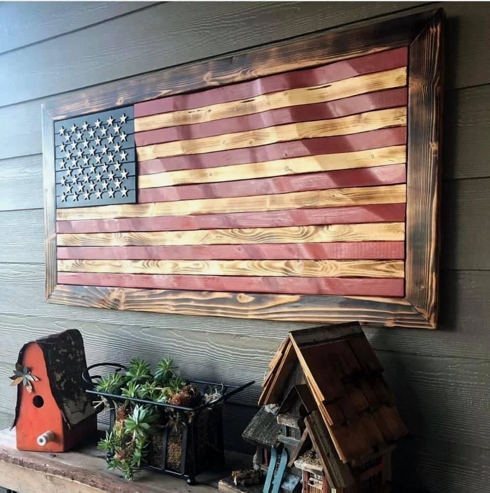 No matter what the style, the color combination, this flag flies off the shelf wherever we go. The 1776 Wooden Flag is made in our various flag styles and designs. Please be sure to let us know in your order if there are any special requests in your order. This piece is going to be the focal point of any room you put it in. Hand-carved from scratch, which gives you the custom look without the custom price tag. Each one is one of a kind! Mounting hardware is included, (2) D’ring hangers rated up to 50LBS. All of our flags are treated for indoor or outdoor use without the additional cost!
